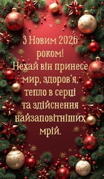 З Новим роком! Нехай він принесе вам усе найкраще, що тільки можливо. Бажаю щасливих днів, спокійних ночей, гарного настрою та міцного здоров’я. Також бажаю успіху у роботі, гармонії в родині, взаєморозуміння з друзями та достатку в домі. Нехай попереду на вас чекають лише позитивні зміни, приємні події та радісні новини. І нехай ваше життя буде наповнене справжнім щастям!